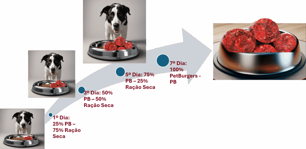 Para Pets não acostumados com alimentos naturais, a transição para PetBurger deve ser gradual.