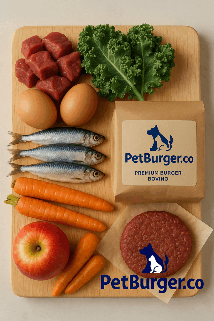 Um PetBurger é um alimento 100% natural, balanceado e completo, feito com carnes reais, como base principal, e vegetais minimamente processados.
